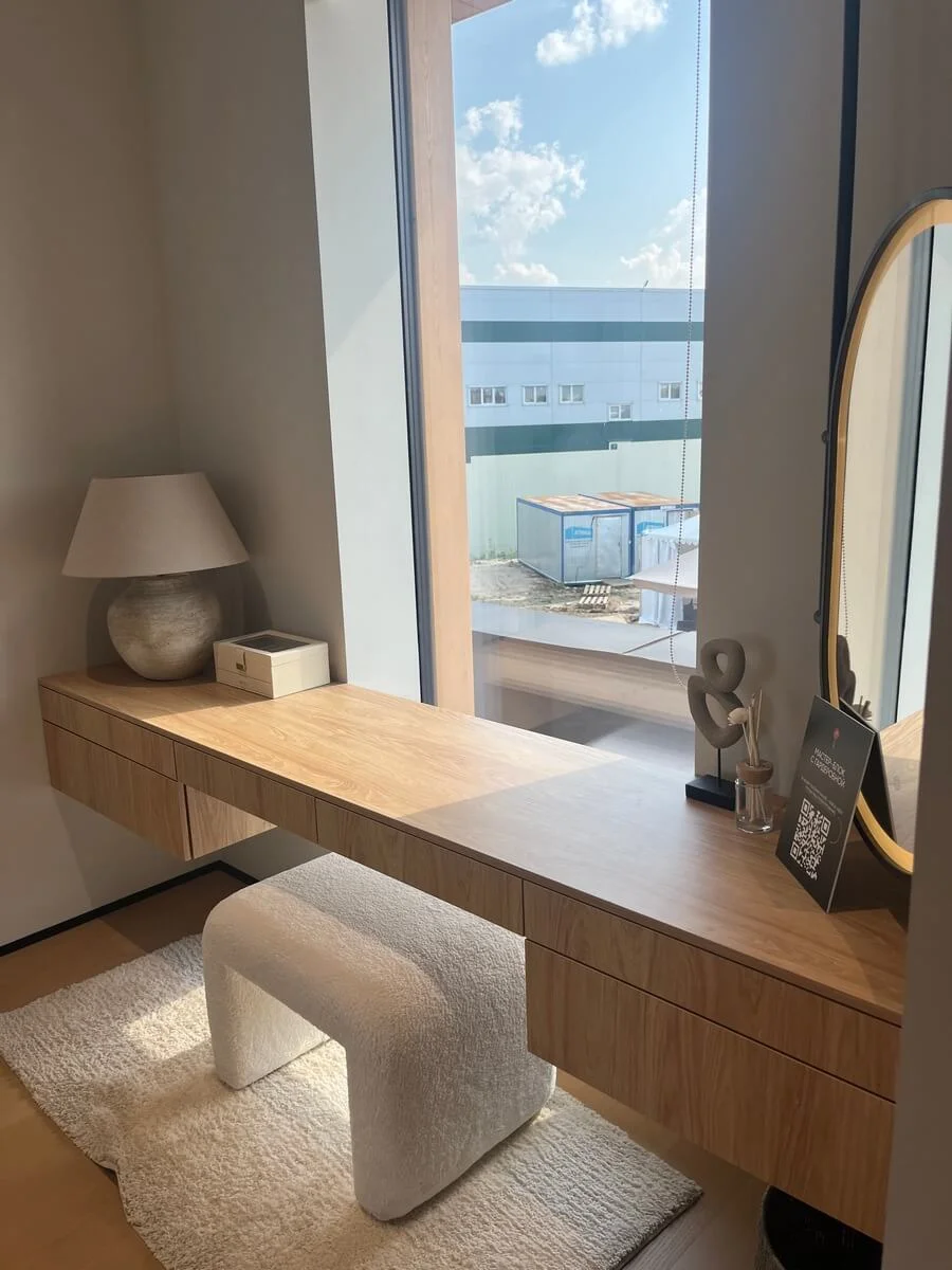 Этот туалетный столик станет гармоничным дополнением интерьера спальни или гардеробной, сочетая в себе стиль, функциональность и удобство.
