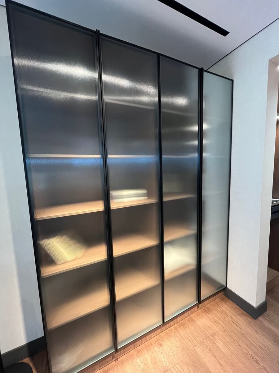 - Двери: Распашные двери с рифленым стеклом создают современный внешний вид.